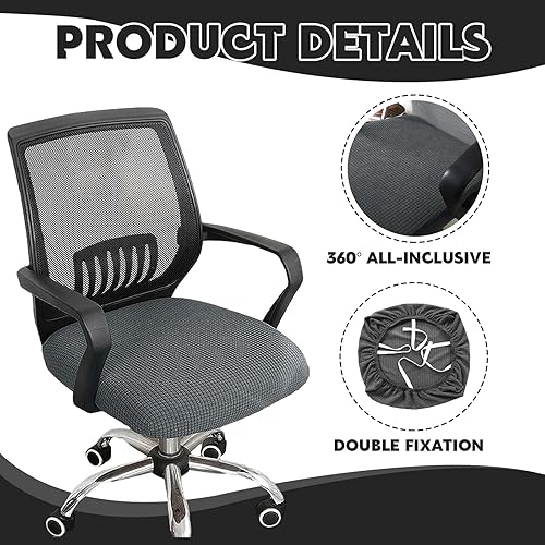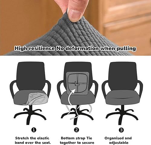 Pizsieat Lot de 2 Housse de Chaise de Bureau Housse Fauteuil Bureau Élastiques Lavables Housse Assise Chaise pour Chaise de Bureau(Gris)