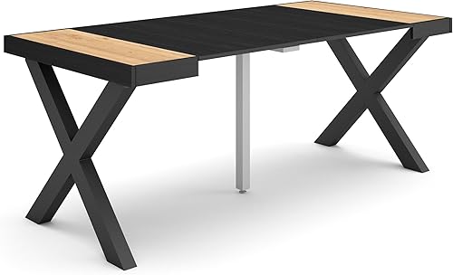 Skraut Home | Table Console Extensible | Console Meuble | 180 | pour 8 Personnes | Pieds Bois Massif | Style Moderne | Chêne