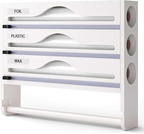 YIMBFCA Derouleur Film Alimentaire avec Porte Sopalin Cuisine, Distributeur Film Alimentaire avec Coupeur, Distributeur Papier Aluminium et Film, Support de Rangement pour Mural/Tiroir de Cuisine