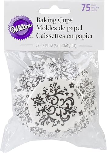 Wilton Caissettes à Cupcakes Damassé, Blanc et Noir Lot de 75 Moules à Cupcakes & Muffins en Papier Caissettes - Lot de 75