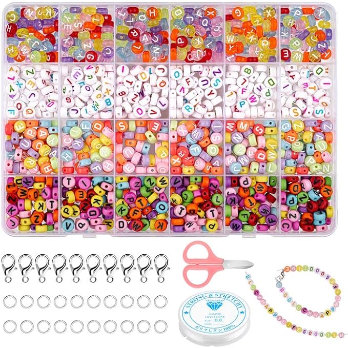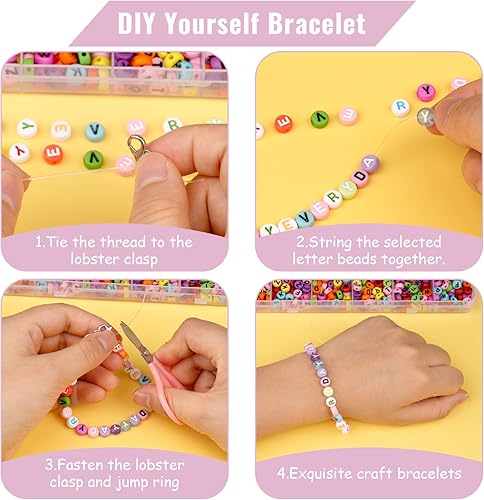 Moosono Perles Lettres pour Bracelet DIY Kit 1200+ Perles Colorées Bracelet Livré avec les Outils, pour Bracelets Collier Boucles d'Oreilles Convient Enfants Adultes