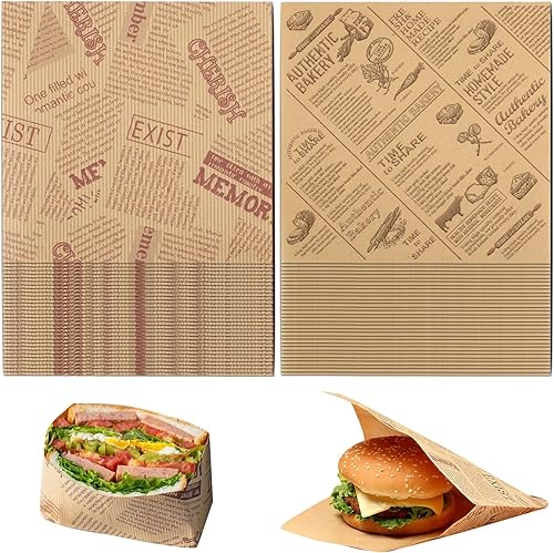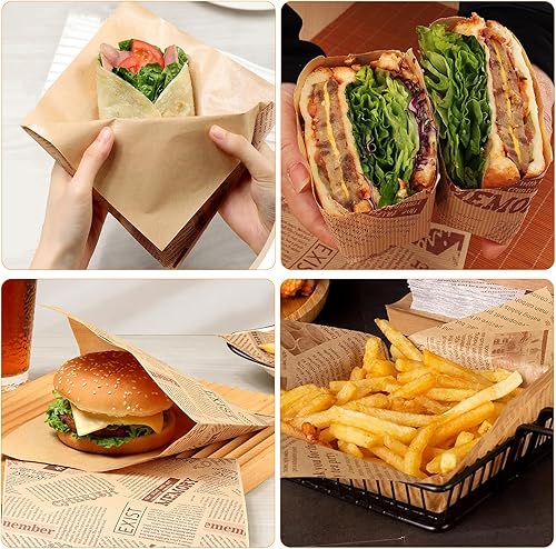 170 Pcs Sachet Kraft Alimentaire, Papier Emballage Alimentaire, Sacs Hamburgers en Papier, Sachet à Sandwich Papiers pour Snacks, Gâteaux, Hot-dogs, Frites (15 x 15 cm)