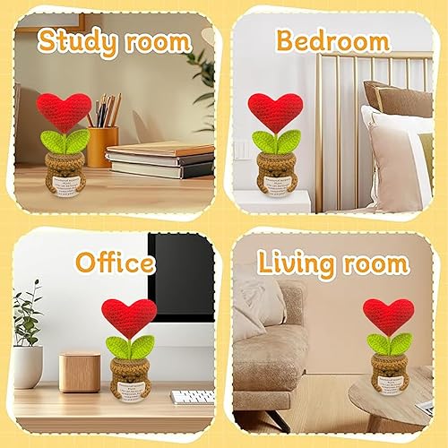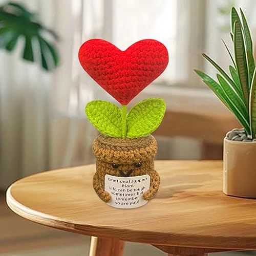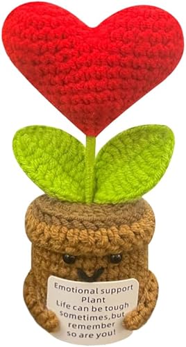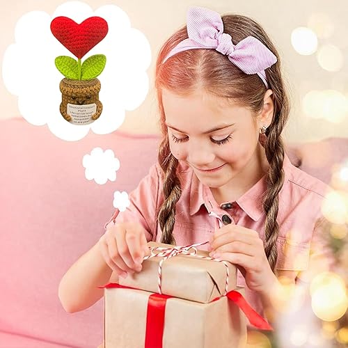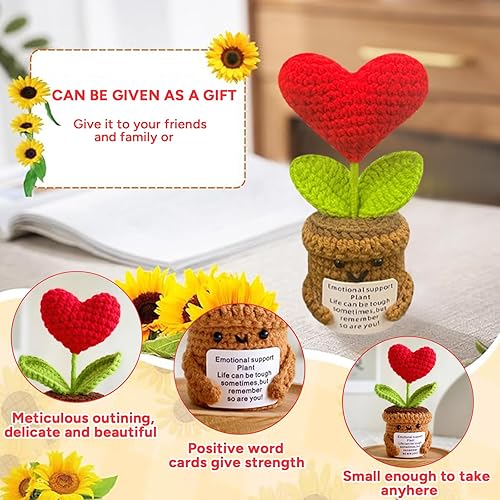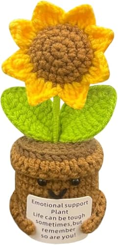 Gkaopi Tournesol Positif au Crochet Mignonne Tricotée Fleur et Succulente Poupée Positive en Tricot avec Carte d'Encouragement Plantes Tricotées de Soutien Positif pour Meilleure Amis