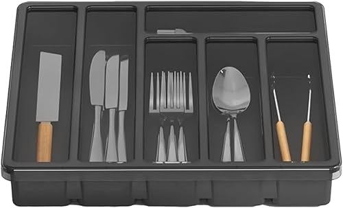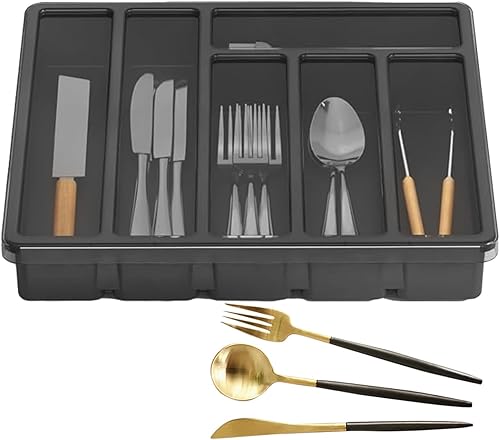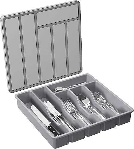 Range-couverts avec couvercle, rangement à couverts pour tiroir de cuisine et plan de travail, range-couverts pour tiroirs en plastique pour cuillères, fourchettes, couteaux, 6 compartiments, 32 x 30