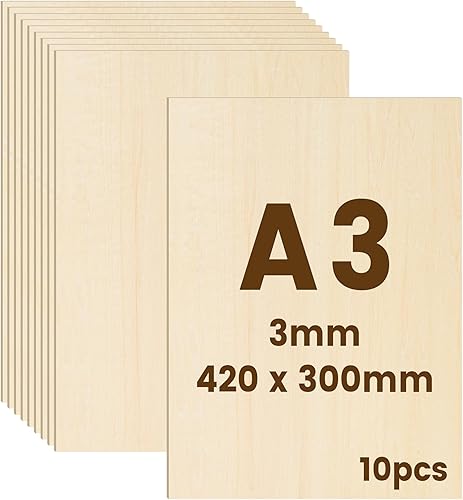 10pcs Contreplaqué 3mm - Bois pour Pyrogravure & Gravure Laser - Planche Bois Modélisme - Planche à Découper - Contreplaqué de Précision DIY (A3-420x300x3mm)