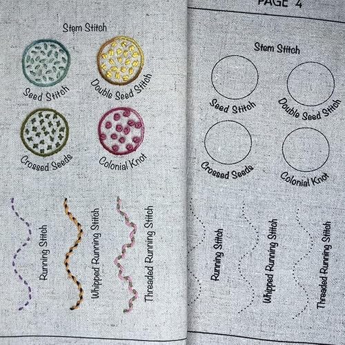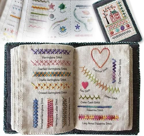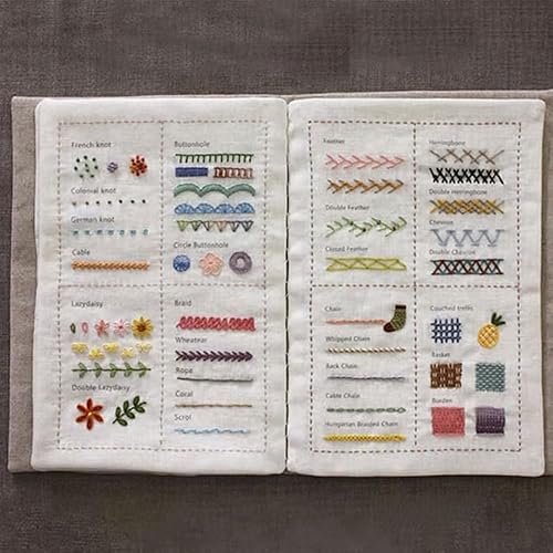 FLUXGOONE Livre de couture DIY Stitch Book avec 24 ensembles de fil à broder, Broderie pour débutants et experts, Livre personnalisable, Embroidery Sewing Book pour tous les âges