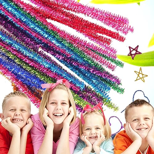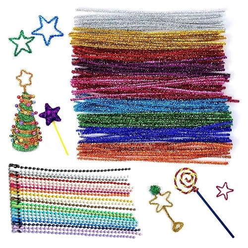 AYNKH 200pcs flash tube Cleaner avec chaîne de perles pour DIY Craft Project 30cm x 6mm multicolore fil de scintillement pour la fabrication de pendentifs décoratifs