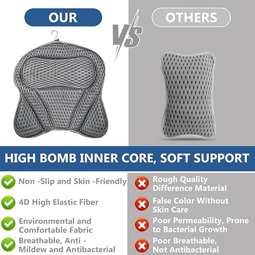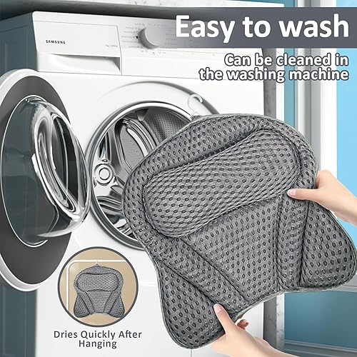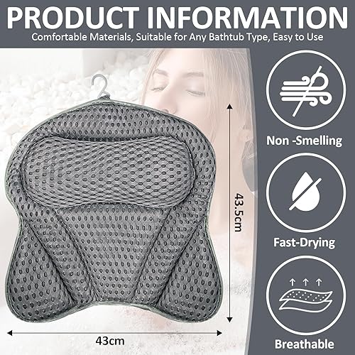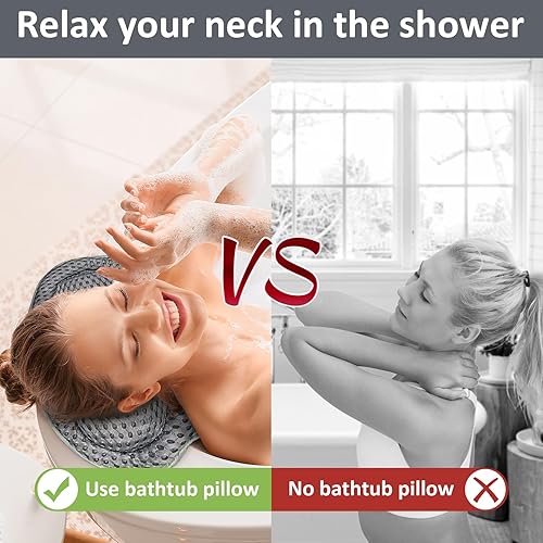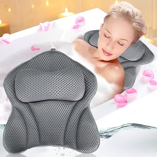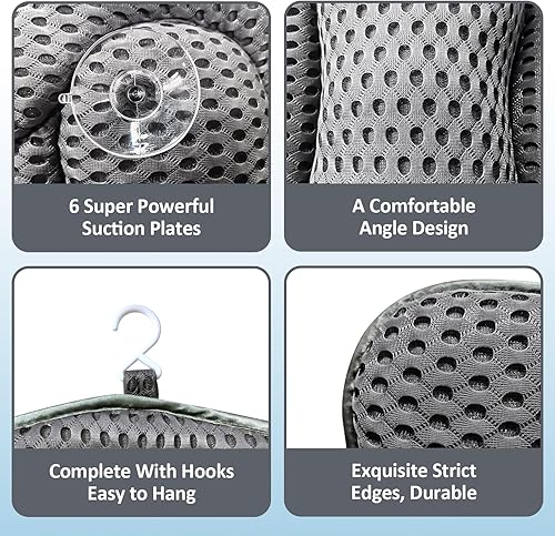 Snarflun Coussin de Baignoire pour Nuque et Dos avec 6 Ventouses - Confort pour Salle de Bain (Gris)