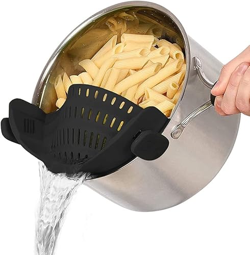 FUYTERY Passoire à pâtes en silicone résistant à la chaleur à accrocher sur les casseroles Outil de cuisine (Le noir)