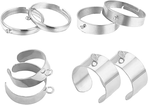 jiingekk Lot de 10 bagues en acier inoxydable avec base ouverte et réglable pour fabrication de bijoux - Cadeau fait main