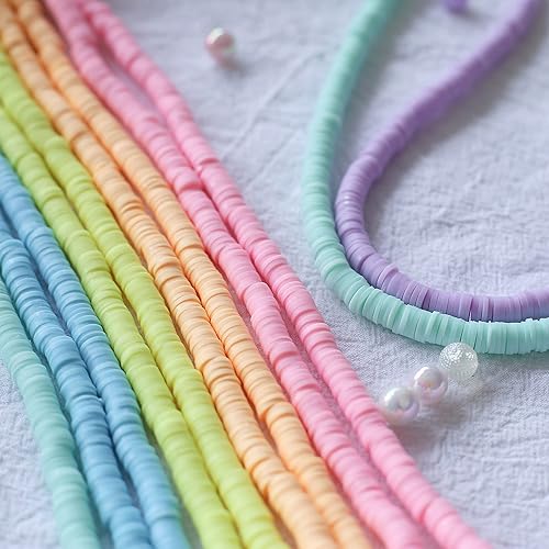 HERZWILD 7000pcs Heishi Lot de perles colorées en argile, perles d'argile polymère de à enfiler pour chocker, collier, bracelet, boucles d'oreilles, fabrication de bijoux DIY (C)