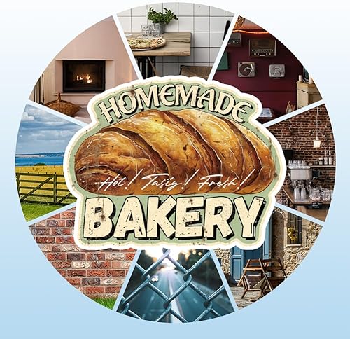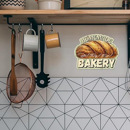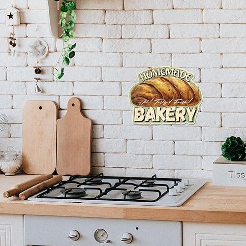GLOBLELAND Plaque en Métal de Boulangerie Faite Maison Signe en Étain Vintage Décoration Murale Amusante pour Salle à Manger Cuisine Restaurant Cafétéria Magasin de Desserts Boulangerie