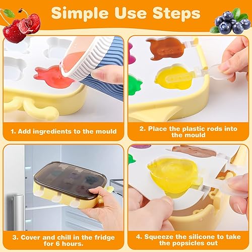 Moule a Glace, 6 Cavités Moules à Popsicle en Silicone, Moule Glace Bebe, Popsicle Moules Réutilisable, Moule Glace Bebe Silicone sans BPA, avec Batonnet DIY Sucettes Glacées Sorbet