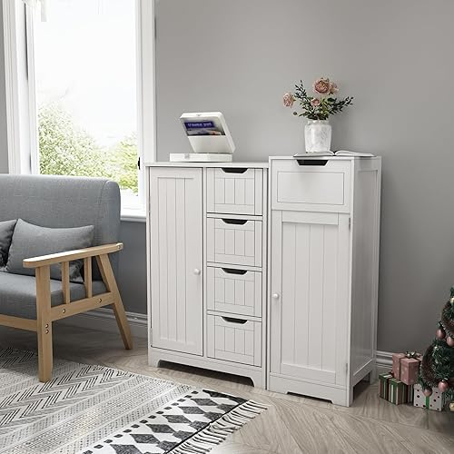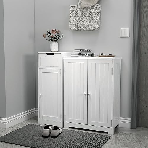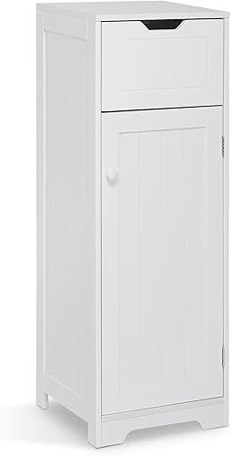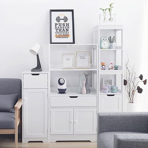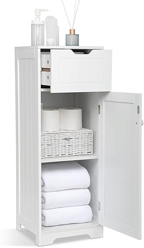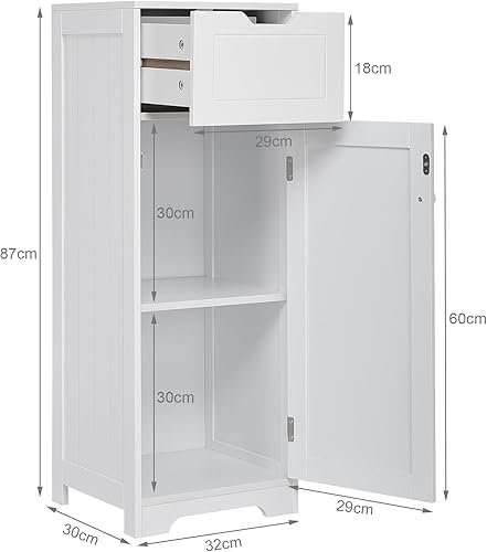 Mondeer - Meuble de Salle de Bain - Colonne de Rangement avec 1 Tiroir 1 Porte et 2 Étagères, 32x30x87cm Moderne en Bois MDF Blanc Laqué, pour Entrée Salle de Bain Salon