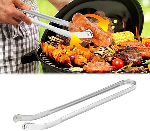 BBQ Sausage Turning Tongs For Cooking Pince tournante pour barbecue avec roulettes, pince rotative pour saucisses, barbecue, en acier inoxydable, longue pince de cuisine, pour fêtes et jardins,