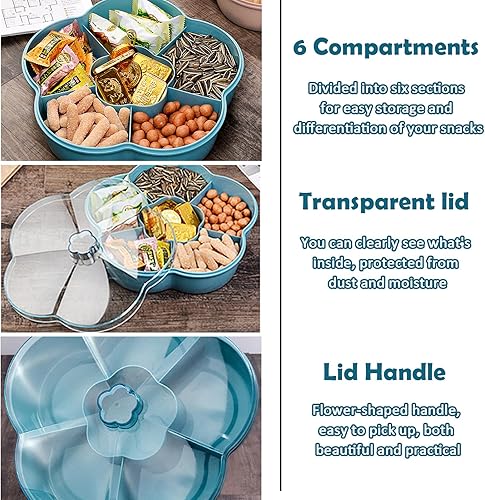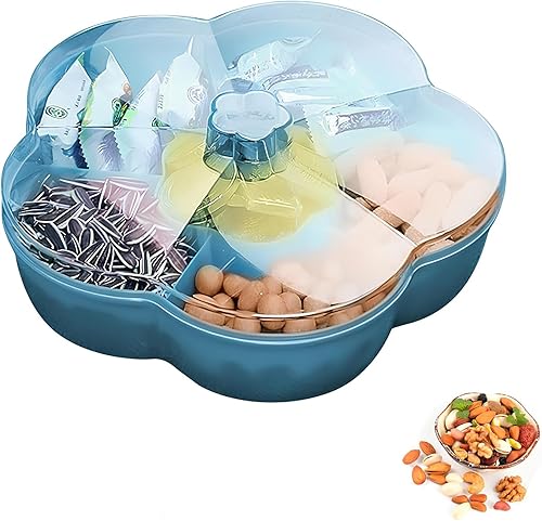 TANJI Plateau à Collation Boîte, Récipient de Service de Bonbons et de Noix, Plateau Apéritif avec Couvercle, Plateaux à Compartiments avec Bord, pour Fruits, Noix, Snacks, Bonbons, Biscuits