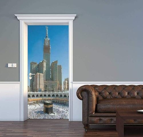 LuSeven autocollant mural La Mecque Arabie saoudite 40x120cm Sticker Porte, Porte Autocollant en PVC Auto-adhésifs, Effet 3D pour Décoration Porte, Art Photo Papier Peint