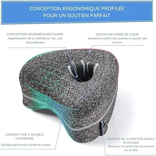 Coussin Genoux Nuit Orthopédique - Ergonomique pour Genoux et Jambes - Mousse à Mémoire Soulagée de SciatiqueCoussin Entre Jambes pour Dormir - Housse Lavable pour Un Comfort Maxima (Blanc)