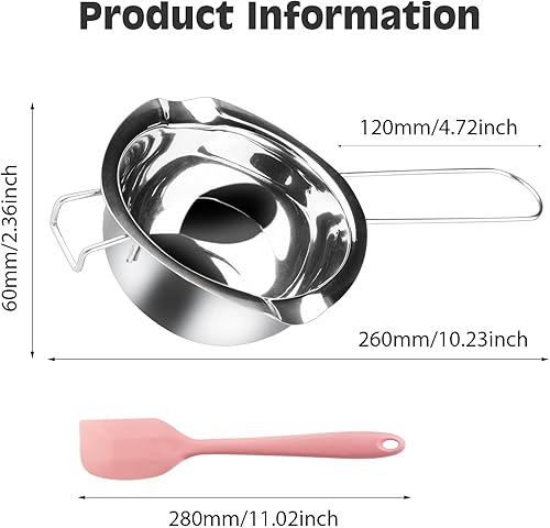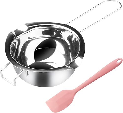 Pot de Fusion : Bain-Marie - Bol de Fusion 400 ML - Pot de Bain d'eau avec spatule Beurre - en Acier Inoxydable - Fromage fondu - Caramel - Bonbons - Cire - Chocolat - en Acier Inoxydable