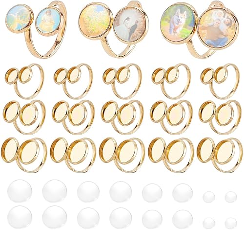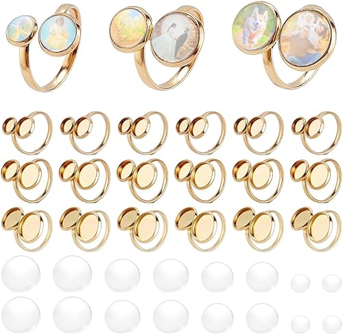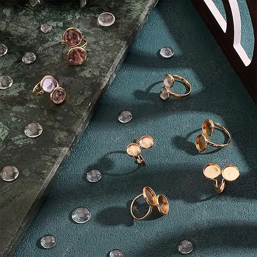 PH PandaHall 18pcs Bases de Bagues Vierges Plaquées Or 18 carat 3 tailles Plateaux de Lunette de Bague Ronds Plats en Acier Inoxydable avec 36pcs 6/8/10/12mm Cabochons pour Bijoux en Bague Bricolage