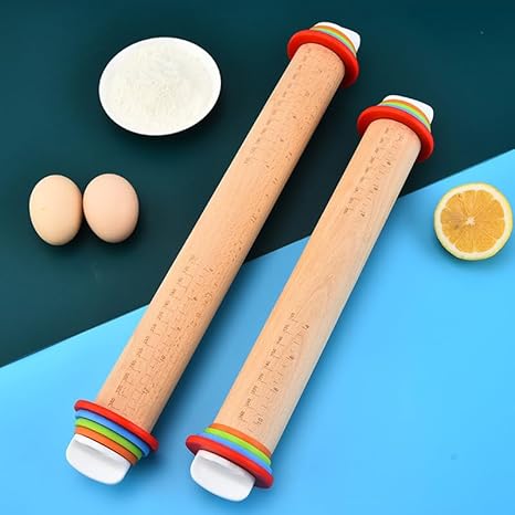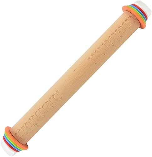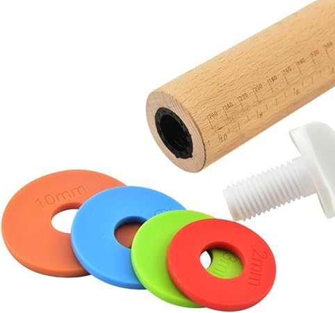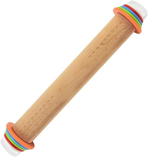 Rouleau à Pâtisserie en Bois de Hêtre, Rouleau à Pâtisserie Ajustable avec 4 Anneaux Amovibles, Rouleau de Cuisson de Anti-Adhérent pour Pâte, Pizza, Fondants, Tarte, Biscuits (42.8 x 6.5 cm)