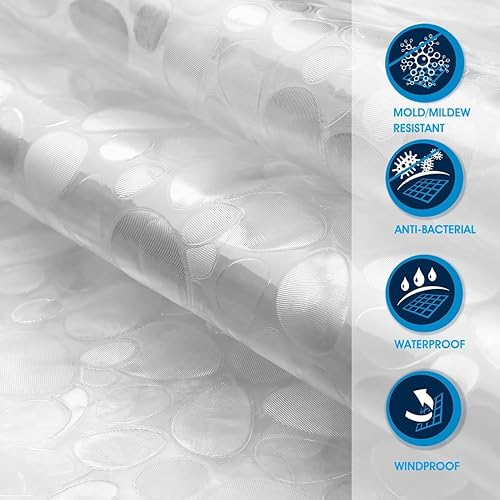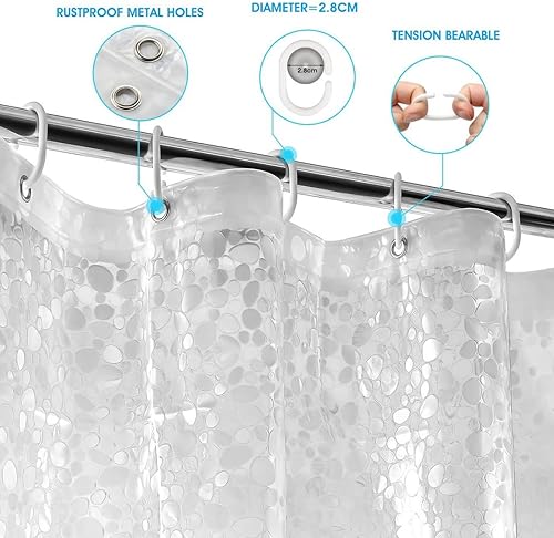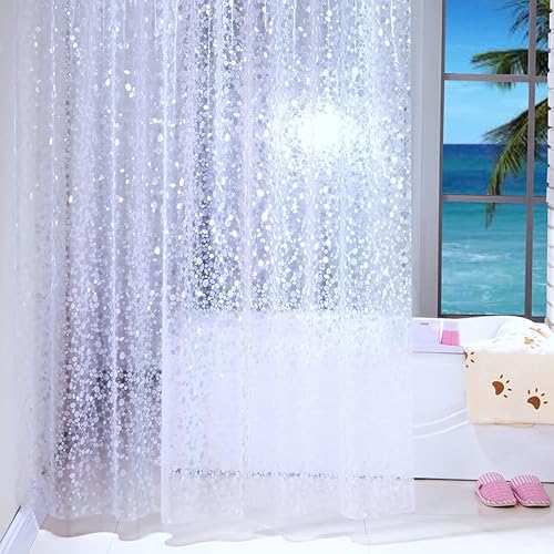 Rideau de douche transparent blanc, étanche, 100 % PEVA avec crochets, Tissu, transparent/blanc, 120x180cm
