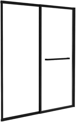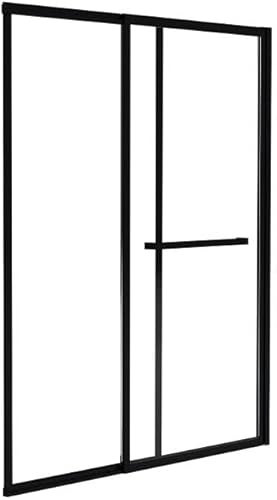 Vente-unique-Pare baignoire coulissant noir mat avec porte serviette - 120x140 cm - WAIMEA