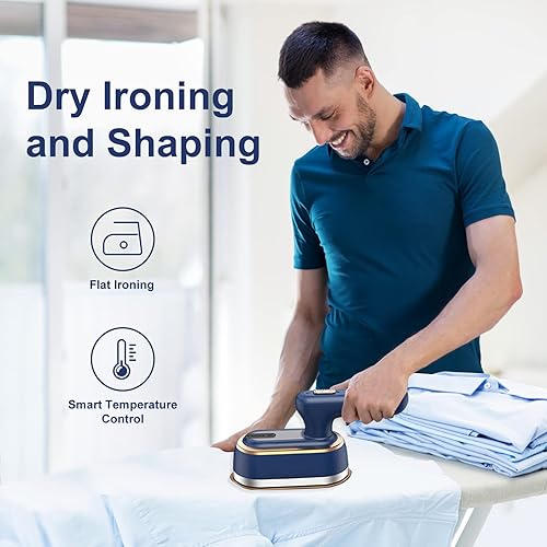 Défroisseur Vapeur, Defroisseur Vetement, Fer a Repasser Vapeur, Repassage Humide et Sec - Mini 17.5cm, Vintage Bleu
