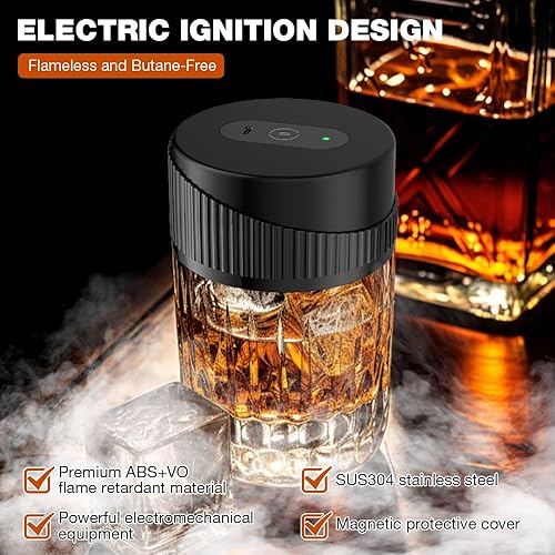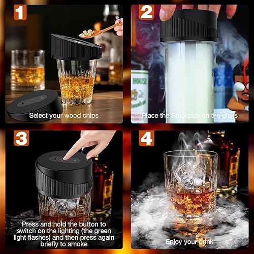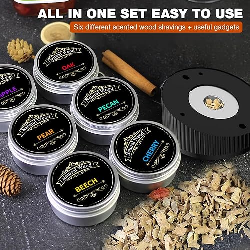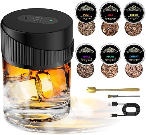Kit de Fumoir Cocktail, Kit de Fumoir à Whisky Électrique Comprend 6 Copeaux de Bois, kit de Fumoir à Cocktail Rechargeable, Convient aux Hommes, Papa, Mari, Anniversaire, Cadeau d'anniversaire