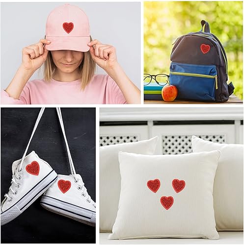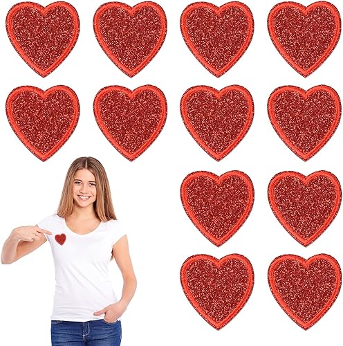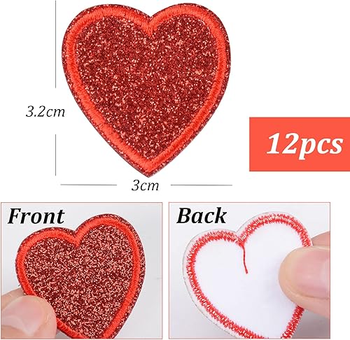 12 Patchs Thermocollants Coeur Paillette Autocollant Tissu Ecussons à Coudre en Réparation Embellissements pour Vêtements Jeans Sacs à Dos Chaussures Décorations