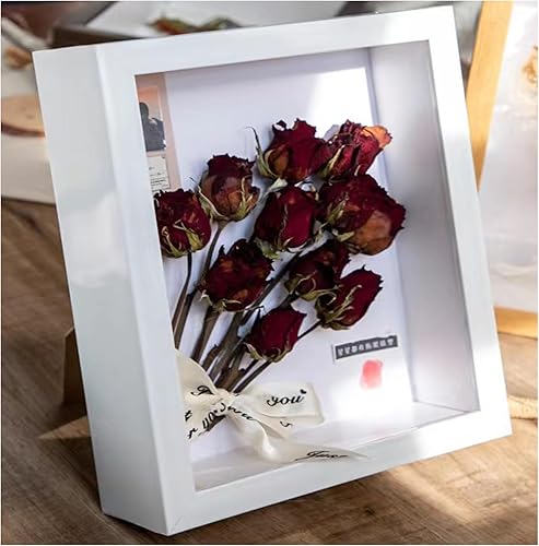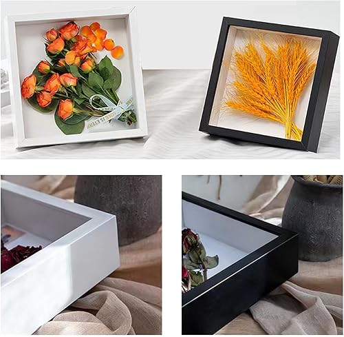 Cadre photo 3D GSHUR, 20 x 20 cm, profond, pour objets jusqu'à 3 cm, à remplir, forme carrée, blanc