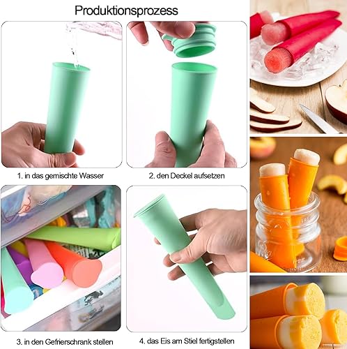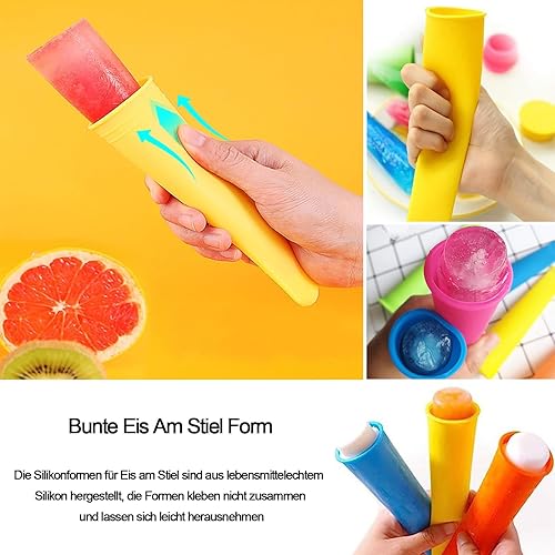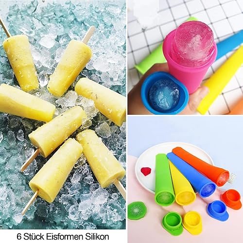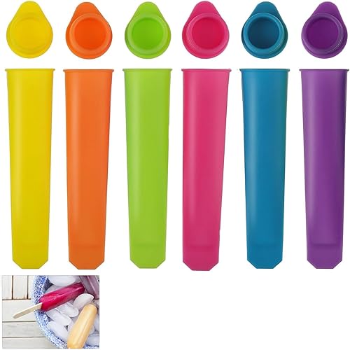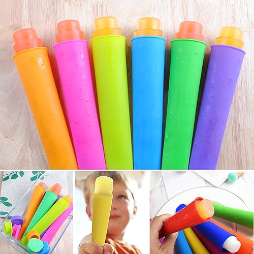 Lot de 6 moules à glace en silicone - 6 couleurs - Réutilisables - Pour réaliser des popsicles à glace DIY