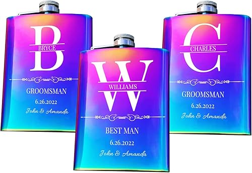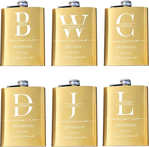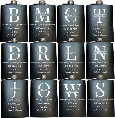 Lot de 12 flasques personnalisées en acier inoxydable pour garçons d'honneur - 236,8 g - Cadeau pour témoin de mariage - Noir