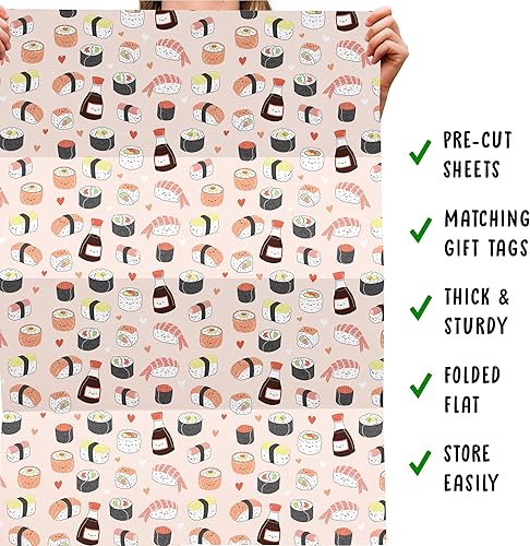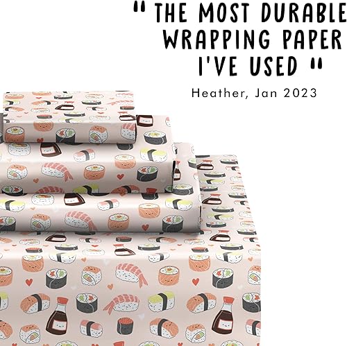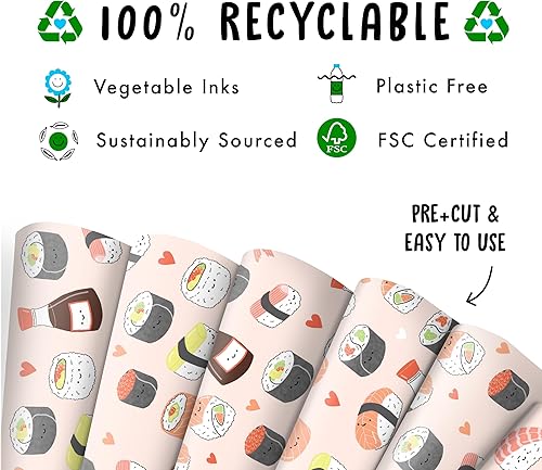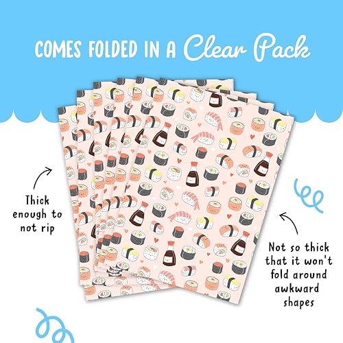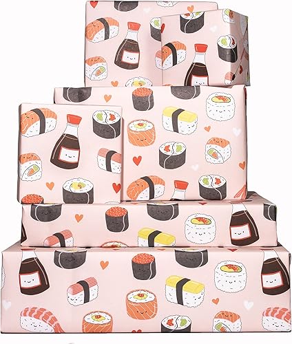 Central 23 - papier d'emballage rose - faces de sushi - 6 feuilles d'emballage cadeau - emballage cadeau tendance pour filles, femmes, adolescents - éco et recyclable