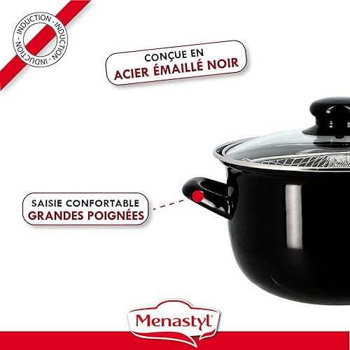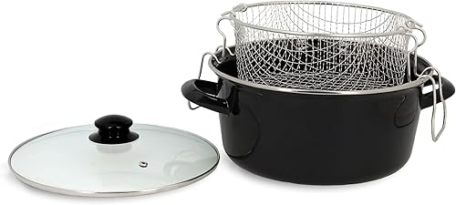 MENASTYL - Friteuse 26cm en acier émaillé noir et bord chrome - Fournie avec couvercle et panier, pour des frites maison délicieuses - 3645580