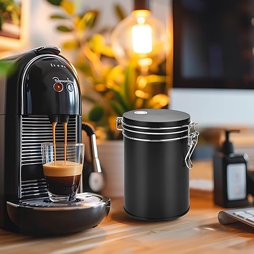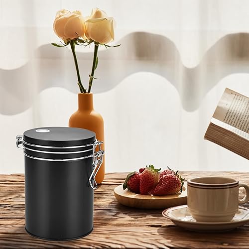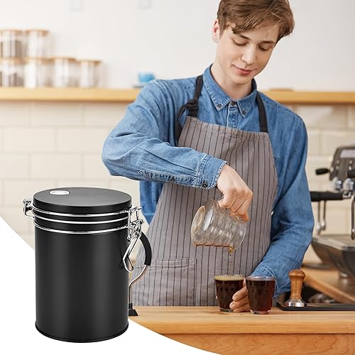 Trendecor Boîte à café hermétique en acier inoxydable - 1 l - Avec valve de sortie - Pour café, thé, noix, cacao - Noir