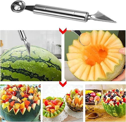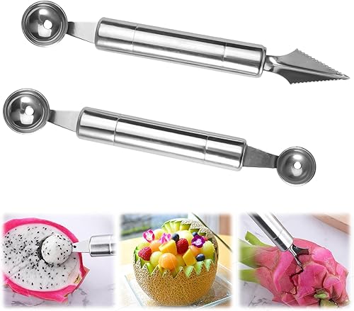 4 Pièces Outil à Découper les Fruits, 2 en 1 Couteau pour Sculpture Fruits, Cuillères à Fruits en Acier Inoxydable, éplucheur de Melon, Couteau à Découper Fruits Multifonctionnel pour Maison, Cuisine