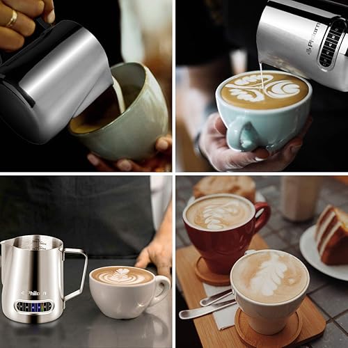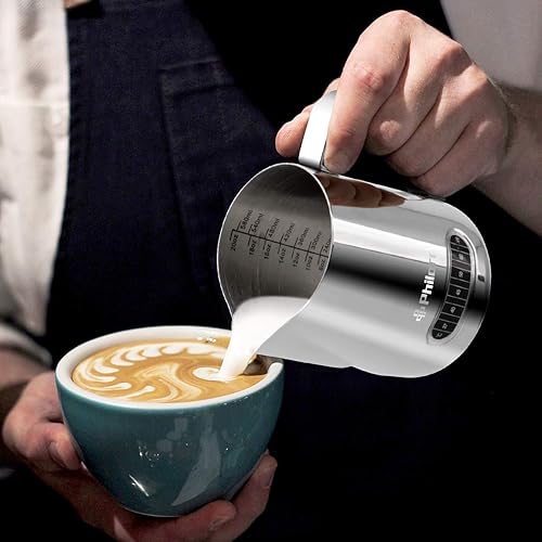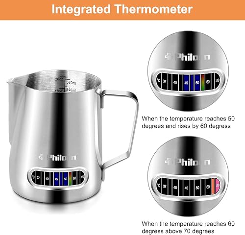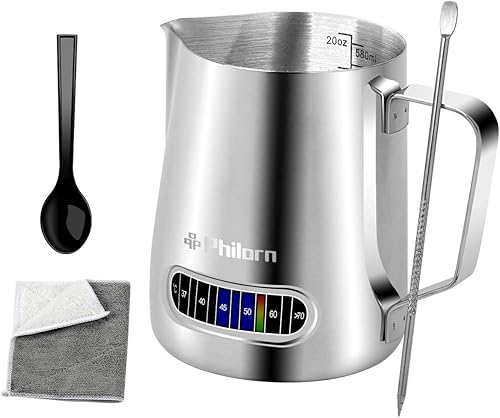 PHILORN Tasse à Mousser De Lait Coffee Avec Affichage Et Mesure De La Température Pichet à Mousser à Lait Expresso, Pichet à Café à La Vapeur - Stylo D'art Café Gratuit, Torchon, Cuillère