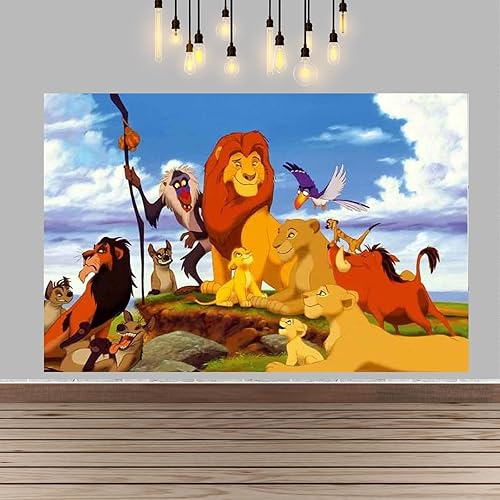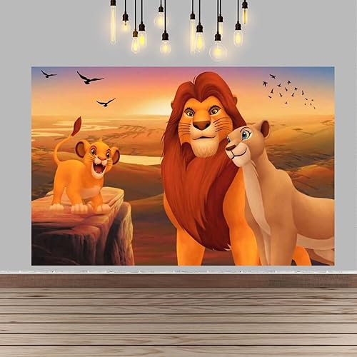 Toile de fond en tissu de dessin animé Roi Lion pour décoration de fête