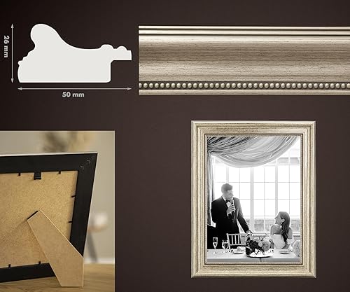 CABBEL Cadre photo 13 x 18 cm, argenté, style baroque, vintage, pour posters, photos et certificats, avec verre acrylique incassable, décoratif et élégant, parfait pour le salon, le bureau ou la