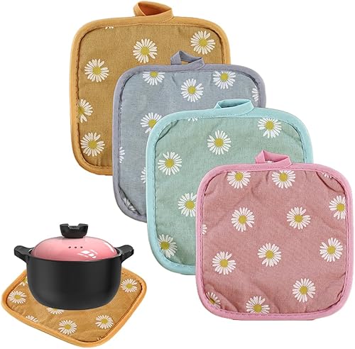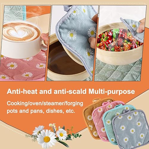 JEYORZY 4 Pièces Maniques Résistantes à la Chaleur, Maniques Cuisine,Kitchen Manique Protection Manique,pour Four Pot Assiette Bol Tasse,17x17 cm(Pâquerette)