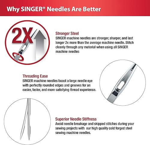 SINGER Lot de 5 aiguilles pour machine à coudre denim, taille 100/16