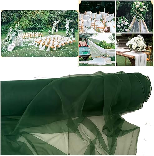 Tissu en tulle au mètre - 8 m x 160 cm - Transparent - Délicat - Tissu décoratif - Tissu maille - Rideau de mariage - Décoration de mariage - Cérémonie - Fête - Cadeau - Vert foncé