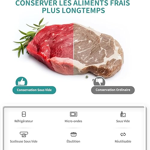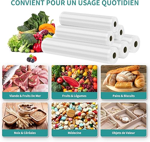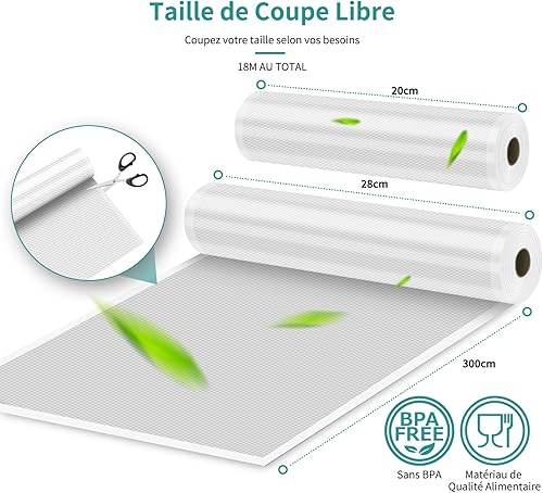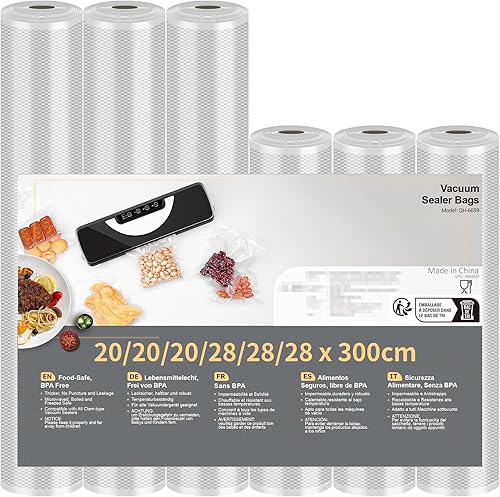 Sacs Sous Vide Alimentaire 6 Rouleau Sous Vide Alimentaire 3 Rouleaux 28x300cm et 3 Rouleaux 20x300cm Film Sous Vide Alimentaire, pour Machine Sous Vide des Aliments et la Cuisson, Sans BPA