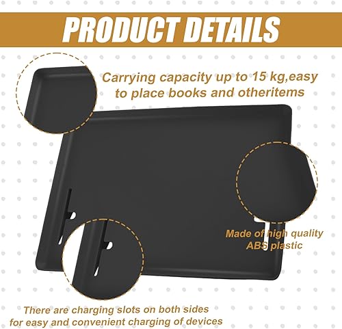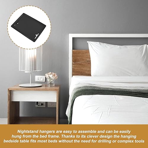 WIYETY Table de chevet noire Étagère suspendue : table de chevet à suspendre, table de chevet à accrocher au lit, clip d'étagère, plateau de lit flottant, table de chevet étagère pour lit