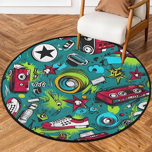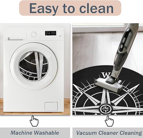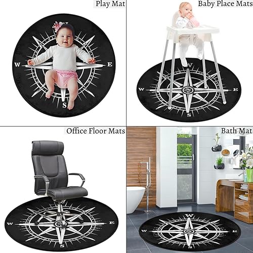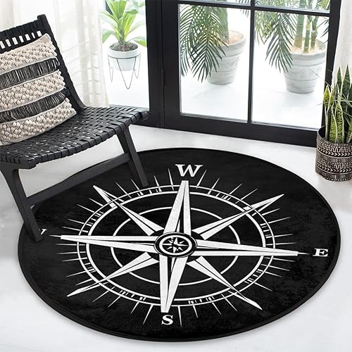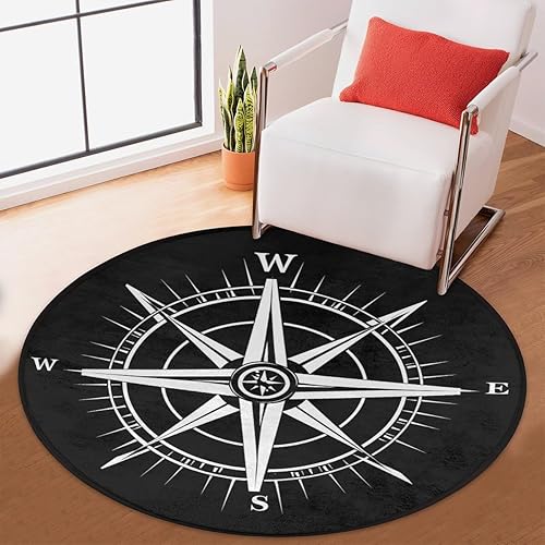 Mexpekil Tapis rond motif boussole pour salon, tapis de sol lavable avec envers antidérapant, 160 cm de diamètre, décoration d'intérieur moderne