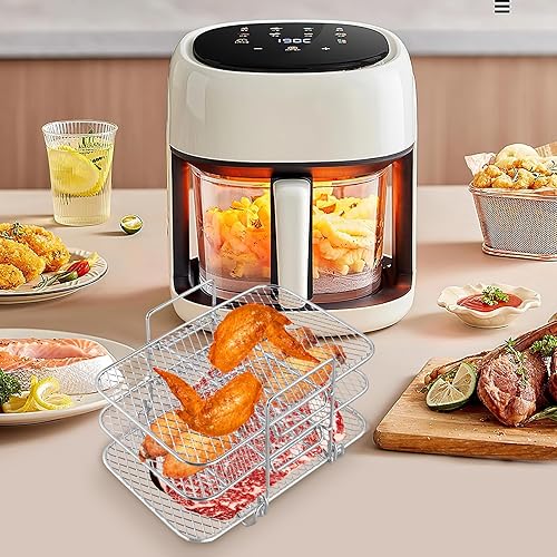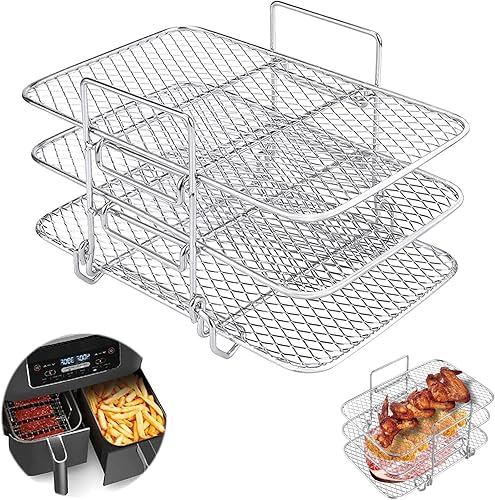 Grille Air Fryer Accessoires Air Fryer Rack Acier Inoxydable Multifonctionnel à Trois Couches Grill Accessoires de Friteaux à Air Chaud