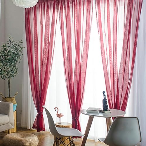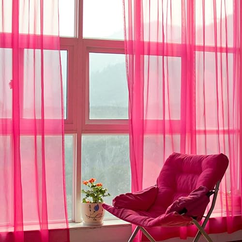 KnSam Rideaux Voilages Fuchsia Passe Tringle, Rideau Couleur Unie, 2 Panneaux, 264 x 213cm (1 Panneau: 132 x 213cm)