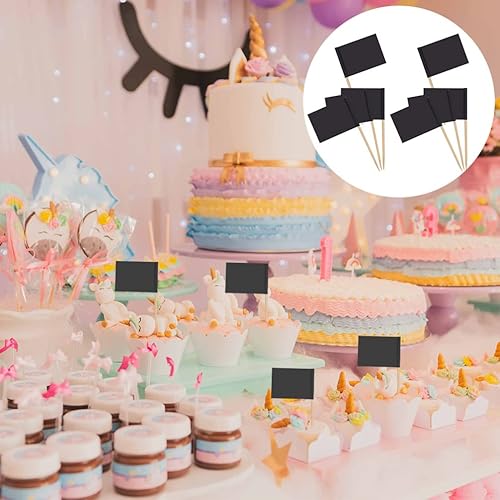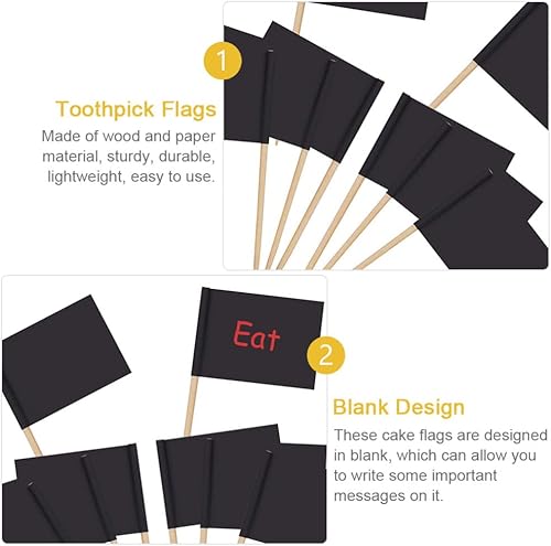 jojofuny 200Pcs Drapeaux de Cure- Dents Vides Marqueurs de Fromage à Cupcake Noir
