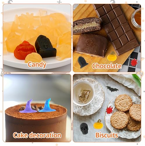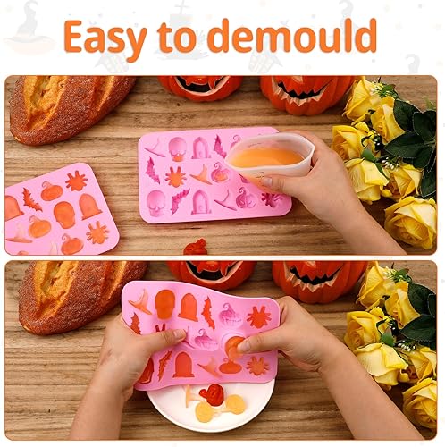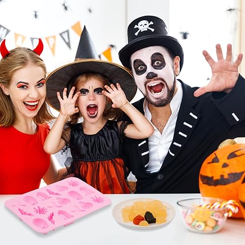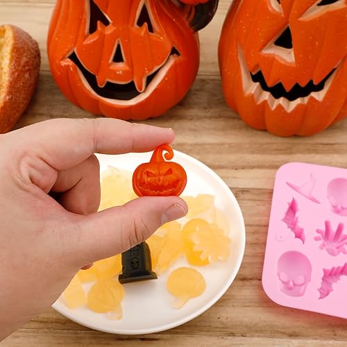 2pcs Moules à Citrouilles d'Halloween, Moule en Silicone Halloween de Squelettes Amusants Moule de Chauves-Souris Moule d'Araignées d'Halloween pour Biscuits Bonbons Gélifiés Chocolat Gelée